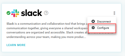 On the Integrations page, you can now click "Configure" to provide details about your Slack connection.