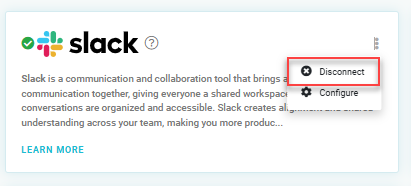 Click on three dots and select Disconnect option. It will ask for confirmation and your slack connection will be disconnected successfully.